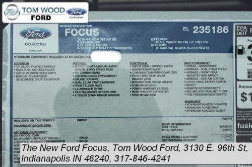 Focus SE, 4D Sedan, 2.0L I4 DGI Ti-VCT PZEV, Automatic, FWD, and Blue Candy. Right car! Right price! Hey! Look right here!