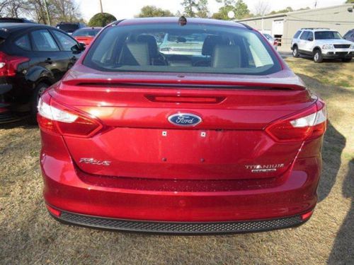 This 2014 Ford Focus 4dr 4dr Sdn Titanium Sedan features a Engine: 2.0L I-4 GDI Ti-VCT Flex Fuel 4cyl Flex Fuel engine. It is equipped with a 6 Speed Automatic transmission. The vehicle is Ruby Red Tinted Clearcoat with a Other interior. It is offered with a full factory warranty. - Air Conditioning, Cruise Control, Tinted Windows, Power Door Locks, Leather Shifter, Tachometer, Digital Info Center, Tilt Steering Wheel, Steering Wheel Radio Controls, Side Airbags, Keyless Entry, Security System, ABS Brakes, Traction Control, Dynamic Stability, Rear Defogger, Fog Lights, Intermittent Wipers, Front-Wheel Drive, 6-Way Power Driver Seat -inc: Power Recline, 4-Way Passenger Seat -inc: Manual Recline and Fore/Aft Movement, Power Rear Windows, Front Cupholder, Rear Cupholder, Compass, Proximity Key For Doors And Ignition, Valet Function, HVAC -inc: Underseat Ducts, Glove Box, Driver Foot Rest, Full Cloth Headliner, Interior Trim -inc: Metal-Look Instrument Panel Insert, Leatherette Door Trim Insert, Leather Gear Shift Knob, Day-Night Rearview Mirror, Driver And Passenger Visor Vanity Mirrors with Driver And Passenger Illumination, Full Floor Console with Covered Storage, Fade-To-Off Interior Lighting, Front Map Lights, Full Carpet Floor Covering -inc: Carpet Front And Rear Floor Mats, Carpet Floor Trim and Carpet Trunk Lid/Rear Cargo Door Trim, Cargo Area Concealed Storage, Cargo Space Lights, FOB Controls -inc: Trunk/Hatch/Tailgate and Remote Engine Start, SYNC Communications & Entertainment System -inc: 911 Assist, Instrument Panel Bin and Driver / Passenger And Rear Door Bins, Delayed Accessory Power, Power 1st Row Windows with Front And Rear 1-Touch Up/Down, Systems Monitor, Analog Display, Outside Temp Gauge, Front Center Armrest, 2 Seatback Storage Pockets, Air Filtration, 2 12V DC Power Outlets, Wheels: 17 Sport Aluminum, Tires: P215/50R17 95W AS BSW, Clearcoat Paint, Body-Colored Front Bumper, Body-Colored Rear Bumper, Body-Colored Door Handles, Chrome Side ...