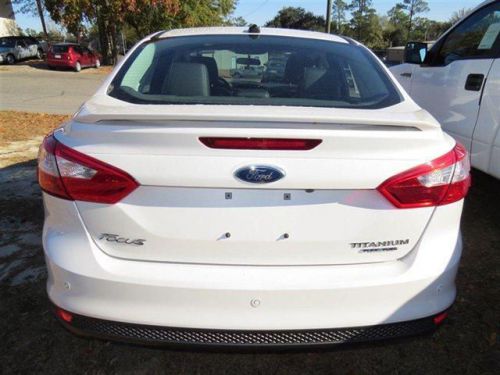 This 2014 Ford Focus 4dr 4dr Sdn Titanium Sedan features a Engine: 2.0L I-4 GDI Ti-VCT Flex Fuel 4cyl Flex Fuel engine. It is equipped with a 6 Speed Automatic transmission. The vehicle is White Platinum Tri-Coat with a Other interior. It is offered with a full factory warranty. - Air Conditioning, Cruise Control, Tinted Windows, Power Door Locks, Leather Shifter, Tachometer, Digital Info Center, Tilt Steering Wheel, Steering Wheel Radio Controls, Side Airbags, Keyless Entry, Security System, ABS Brakes, Traction Control, Dynamic Stability, Rear Defogger, Fog Lights, Intermittent Wipers, Front-Wheel Drive, Leather Bucket Front Seats with Leatherette Back Material and Manual Driver Lumbar, 6-Way Power Driver Seat -inc: Manual Lumbar Support, 4-Way Passenger Seat, Full Folding Bench Front Facing Fold Forward Seatback Leather Rear Seat, Power Rear Windows, Front Cupholder, Rear Cupholder, Compass, Proximity Key For Doors And Ignition, Valet Function, HVAC -inc: Underseat Ducts, Glove Box, Driver Foot Rest, Full Cloth Headliner, Interior Trim -inc: Metal-Look Instrument Panel Insert, Leatherette Door Trim Insert, Leather Gear Shift Knob, Day-Night Rearview Mirror, Driver And Passenger Visor Vanity Mirrors with Driver And Passenger Illumination, Full Floor Console with Covered Storage, Fade-To-Off Interior Lighting, Front Map Lights, Full Carpet Floor Covering -inc: Carpet Front And Rear Floor Mats, Carpet Floor Trim and Carpet Trunk Lid/Rear Cargo Door Trim, Cargo Area Concealed Storage, Cargo Space Lights, FOB Controls -inc: Trunk/Hatch/Tailgate and Remote Engine Start, SYNC Communications & Entertainment System -inc: 911 Assist, Instrument Panel Bin and Driver / Passenger And Rear Door Bins, Delayed Accessory Power, Power 1st Row Windows with Front And Rear 1-Touch Up/Down, Systems Monitor, Analog Display, Outside Temp Gauge, Front Center Armrest, 2 Seatback Storage Pockets, Driver And Passenger Heated-Cushion and Driver And Passenger Heated-Seatback, Air Fil ...