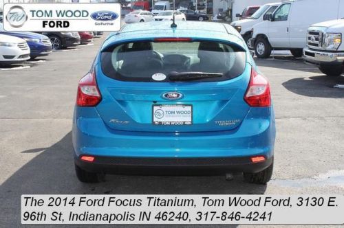 Focus Titanium, 4D Hatchback, 2.0L I4 DGI Ti-VCT PZEV, Automatic, FWD, Blue Candy, and Char Blk Htd Lth. Flex Fuel!