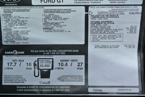 85 MILES!!!!! NEW Ford GT with all 3 Canadian options. Stripes, Calipers and wheels. The vehicle is completely stock, well maintained and comes with Keys, Remotes, Books, Cover, Window Sticker, Compressor and trickle charger. Nothing is missing.