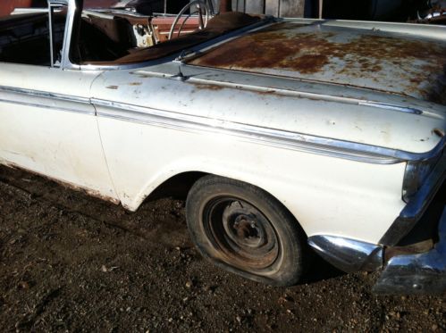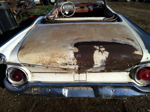 1959 IFord Convertible, 352 motor, stuck, auto, will have a good 1960, 352 motor to go with it, frame is good, little rust under the back seat , and in the trunk wheel well area, have the seats and front glass, the top is complete, body has a few dents but and little rust in the rockers and behind the rear wheels, any questions please ask