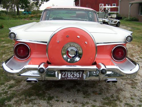 1959 Ford Skyliner Retractable Hard Top Body off restoration in 08'. Showed in International Retractable Show in 08', placed next to best in show. Judged at 993pts. out of 1000pts., most parts on the car are NOS. It has P.S., P.B., A/C, P.W., power seats, town & country radio, day/night mirrors, emergency break light, tissue dispenser, ABC interior (Geranium & White). Rebuilt 352 motor in 08', (driven 1 mile). Cruiseomatic transmission, continental kit, bumper guards, tail pipe extensions, sun-ray center hubcaps, rocker moldings, dual spot lights, 3 piece luggage set, w.w.w. tires, it also has new: brake lines, fuel lines, & front springs. Stored indoors in a climate controlled building. Color of the car is Geranium & White. One of the nicer retractables around. If you have any questions you will need to contact the owner, I am just the person listing it. Thanks PSP92 Owner: Lyle Hutchens 573-247-5061 |