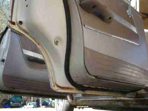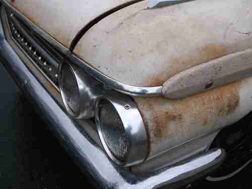 1961 FORD COUNTRY SQUIRE 6 PASS ALL ORIGINAL AND COMPLETE...COLONIAL WHITE WITH 2 TONE ROSE QUARTZ INTERIOR.. 352 CU.IN 2 BBL CARB.. AUTO TRANS/ CRUISE-O-MATIC 3 SPEED.. FACTORY SELECT-AIRE CONDITIONING WITH FACTORY 'SUN-X' TINTED WINDOWS ....OTHER OPTIONS ARE POWER STEERING / POWER BRAKES / POWER TAILGATE WINDOW /ELECTRIC WIPERS AM RADIO / CLOCK....PADDED DASH AND SUNVISORS ALSO OPTIONED WITH RARE WEST COAST AIR POLLUTION CONTROL POSITIVE CRANKCASE VENTILATION SYSTEM.. .ORIGINAL SEAT BELTS FOR SIX IN EXCELLENT CONDITION...BUILT IN APRIL 1961 IN LOS ANGELES DELIVERED TO PHOENIX, ARIZONA AND HAS BEEN THERE ALL ITS LIFE ..USED FOR ONLY 9 TO 10 YRS. THEN ..OFF ROAD SINCE 1971. HAVE ORIGINAL TITLE / DOCS MILEAGE TO BE CORRECT AT 65,616 ....TO BE EXPECTED OF A DRY SOUTH WESTERN CAR.... .BODY HAS ABSOLUTELY NO RUST THROUGH FADED PAINT/PRIMER WITH SLIGHT SURFACE RUST ON REAR OF ROOF....DENT IN DRIVERS REAR QUARTER PANEL..RADIATOR SUPPORT AND BATTERY TRAY ARE SOLID.. FRAME IS EXCELLENT NO DAMAGE OR RUST...OLD WORN.CARPET WAS REMOVED TO EXPOSE FLOORS THAT ARE SOLID.. . BOTTOM OF DOORS ARE EXCELLENT AS IS TAILGATE BOTTOM..UNFORTUNATLY.ORIGINAL WINDSHIELD CRACKED , ALL OTHER GLASS IN EXCELLENT CONDITION.THE INTERIOR IS ALL THER BUT NEEDS TO BE REDONE. I HAVE ALL MISSING FIBER TRIM PIECES THAT ARE MISSING ON CAR (PLUS EXTRAS).....MOTOR TURNS OVER/RUNS WITH ALT. GAS CAN ..FUEL TANK NEEDS TO BE FLUSHED.....BRAKE PEDAL LOW..HAS COMPLETE JACK SET UP AND SPARE TIRE CAR COMES WITH 4 CORRECT 1961 WHEEL COVERS (NOT SHOWN).ACQUIRED FROM ORIGINAL OWNER & DELIVERED TO GA.FROM ARIZONA LAST MONTH 2/13..LAST PICTURE IN AD IS OF A RESTORED 1961 WAGON.....PLEASE EMAIL WITH QUESTIONS