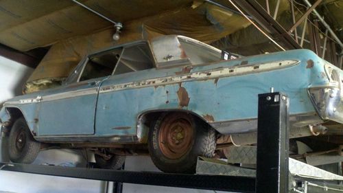Excellent car to restore, VERY SOLID 1962 ford Galaxie 500 XL 406 4 speed car. Look at the pics it is solid i have a great pair of straight,rust free fenders extra set of doors,inner fenders,bumpers, lots of extra little parts that will be needed.. ALL of the trim is in nice to very nice shape all you should have to do is polish it. I bought another car just for the trim because it was so nice that is the trim you will get. I do not have a good hood as i was going to use a crites hood. All the emblems are the engine and trans were running when i pulled them been inside since.