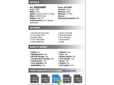1962 Ford Galaxie 406 V8 Tri-power C6 3 Speed Automatic Dual Exhaust Tach Ps on 2040-cars