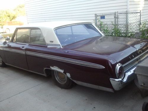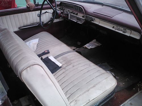1962 ford galaxie 500 2 door , has spotlights in front possibly old police car, maroon in color , little rust, engine rebuilt has a small whole in gas tank, needs some work.