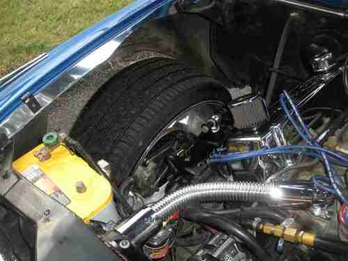 THE REAR, TRUNK,TRANNY, AND DRIVE SHAFT, WERE ALL TUBBED OUT. THE INNER FRONT FENDERS WERE REMOVED. THE FRAME WAS REINFORCED, ALONG WITH THE REAR.(CUSTOM SUPPORTS, AND BRACKETS) (LOOKS BEAUTIFUL!) THE UPPER, AND LOWER CONTROL ARMS WERE CUSTOM MADE,THEN POWDER COATED.