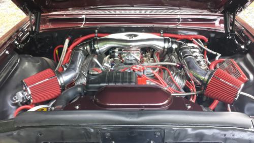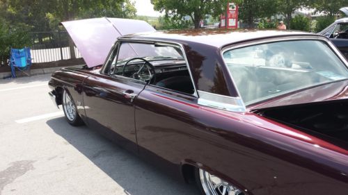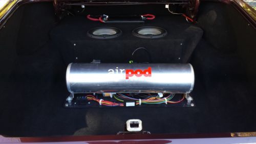 The WHEELS are New 17” Cragar Series 390C Chrome Street Pro 2-piece composite wheel with traditional hot rod styling. These Cragar wheels are mounted on TOYO PROXES 4 P245/45ZR/17 Tires. The BRAKES are drum on all 4 wheels. They have been turned and have been completely equipped with new cylinders and pads. The original booster was replaced with a new 7” chrome booster to allow clearance for the high valve covers. The brakes are 4 wheel drum brakes and stopping power is excellent. The UNDERCARRIAGE of the car has been stripped clean repainted and is free of grease and dirt. Liquid Dynamat undercoating has been applied from front to rear of the car. The rear end is the original Ford 9”-3:00:1 ratio and the EXHUAST recently completed with 2-1/2” pipe that holds 2 Flowmaster 10 mufflers. The Flowmaster 10’s give it an awesome sound with a deep tone. THE SUSPENSION is NEW and has been completely upgraded with Air Ride Technologies Level 2 Air Ride system. “The LEVEL 2 system provides more tuning with the addition of a Shockwave® front kit and the enhanced RideProe3™ control system. The front Shockwave® system is a simple bolt-on install. The single shock and air spring unit provides a cleaner appearance and offers adjustable shock valving to aid in tuning. A Ridetech 4-Link will position the rear more precisely and eliminate the flexing and instability of the leaf spring rear. The 5 gallon RidePro®e3 system provides 4 way digital control. It allows 3 system air pressure presets to provide accurate adjustments with the touch of just one button.” I ordered this system with 2 remotes that allow the system to be adjusted with a touch of a button. It rides like a new car and handles far better than you could ever get with the factory suspension. The TRUNK has been customized and carpeted. Panels have been custom fit and covered to give it a great look as well as a great sound barrier. Dynamat also covers the floor of the trunk and the inner fender wells to reduce noise and improve sound quality. Also, covered panels have been cut to custom fit the inner trunk lid for an added barrier. The EXTERIOR is a Ford color that was used on later model Ford vehicles. Dark Cherry Metallic was chosen early on for this project. One coat of sealer primer rests underneath 2 coats of Dark Cherry Metallic paint and 3 coats of Southern Polyurethane clear/ cut and buffed to a mirror finish. The exterior chrome was removed to give the car a more LOWRIDER feel and streamline effect. This is after all, a MODIFIED street rod not to be mistaken for an all ORIGINAL car. The FRONT BUMPER has been completely restored and triple chromed by Tri-City Plating in Elizabethton, TN. The rear bumper is driver quality but needs to be re-chromed. The headlight bezels were repaired and re-chromed by Atlantic Coast Plating in Athens, TN and 4 Chrome (Ford) Headlight protective rings were added for a greater appeal. The car could be cut and buffed once again if the buyer chooses to get an even better shine out of the paint. To get a deeper more illustrious gloss the car can be re-cleared up to 8+ more times. The clear coat is Southern Polyurethane 4000-1. 1:1 ratio.