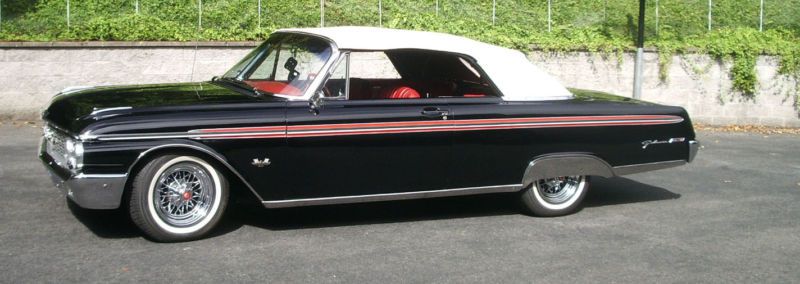 1962 Galaxie 500 XL Convertible. A real G-code car with 406 cubic inch V8 factory rated at 405 horsepower. Three Holley 2v carbs; top-loader 4-speed transmission; 3.50 (open) ratio 9"rear end. Built at the Mahwah, N.J. plant July 21, 1962 as a "DSO" vehicle. Car #84 in the 62 Ford Galaxie Registry. Raven black paint; Rangoon red vinyl interior; and white convertible top. This car underwent a full, frame-off restoration by its' second owner in 1992. Always garaged and pampered. Has only 10,000 miles since restoration, to wit: Paint: PPG ( base coat, clear coat) Engine: pistons, rings, etc.; cam, lifters (solid), timing chain and gears; bearings (rod, crank, cam etc.) Heads Rebuilt: new valve seats (for unleaded gas); new valves; new valve springs ( high performance inner and outer); ported bowls; 3x2 carburetors (rebuilt) Dual Exhaust: with correct mufflers and resonators (new) Complete Front End rebuilt with new: springs, bushings, ball joints, tie rod ends, pitman arm, shocks (front and rear); Rear Springs (new); Four (4) speed transmission (rebuilt) Clutch and Pressure plate (new); Brakes and brake cylinder (front and rear); Interior: seat covers (NOS), rugs, floor mats and trunk mats.. Car has the factory correct SUN tach mounted atop steering column, which has been converted to solid-state and works perfectly, as does the clock! Ignition converted to MSD electronic with 6000 RPM limiter. Factory optional stainless steel fender skirts and dual side mount rear view mirrors. Factory AM radio in dash; but Sony AM-FM stereo in glove compartment with remote tuner. Period correct power assist steering has been added; as has power brakes with dual chamber master cylinder. Factory drum brakes front and rear. Power convertible top works flawlessly, all original body panels and trim/glass. Currently has some engine dress-up but original gold "406" valve covers included, as are factory 15" steel wheels and full wheel covers. Car currently sports 15" x 7" Truspoke fat wire chrome wheels with correct insignia center caps, radial white wall tires and 90% tread including spare. Original 6.70 x 15 bias ply spare on stock rim included, as are pair exhaust resonators ( removed to enhance exhaust note). Restoration fully documented by receipts. Included are many manual, articles, and brochures. Offered is a nearly perfect example of an iconic period muscle car with great drivability.