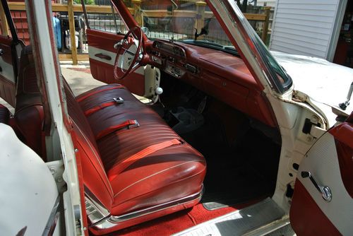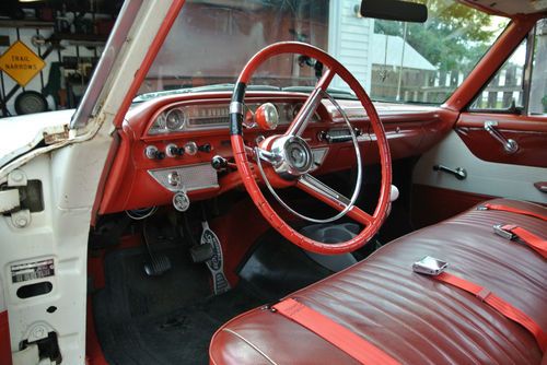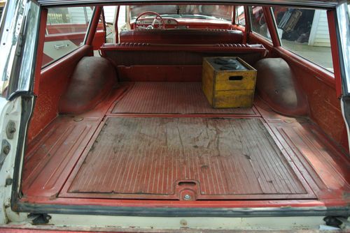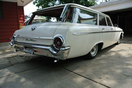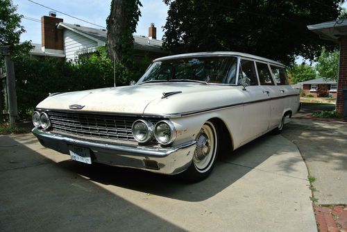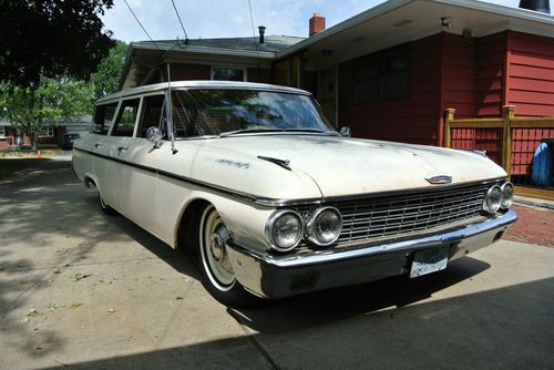 1962 Ford Ranch Wagon (Galaxie). This is a western car from Wyoming, brought to Indy 2 years ago. I have put alot of effort into getting this car road ready and have driven it out of state Indiana) multiple times, with no issues whatsoever. It has a 292 V8 (refreshed), 1989 T5 mustang transmission (5 speed), new driveshaft, new tires, exhaust, brakes, carpet, completely rebuilt front end, all bushings, tie rods, ball joints, custom wound coil springs that drop it 3" in the front, 2 1/2" blocks in the back.