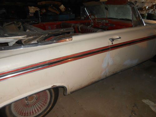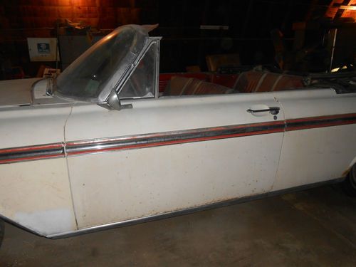 I have a 1962 ford convertible project for sale. Vehicle was stored for many years in dry storage up on blocks. I bought it with intentions of re doing the car. Health and other reasons forcing sale, It has a non original 1960 292 engine in it with less than 60,000 miles on it. Original engine was pulled to be refreshed but was lost in a shop fire. Engine is in the car but needs to be buttoned up. Body is surprisingly good for its age with only minor dents and no rust thru. The top frame works well and is power. The vinyl top itself is bad and needs to be replaced. Have many replacement parts in trunk including new carb and a grille assy with headlight bezels. Interior is old. Seat covers are hard and front seat needs attention as you can see in the pictures. Really a decent project and not overwhelming amount of work to do. Please bid to buy as it will be sold.