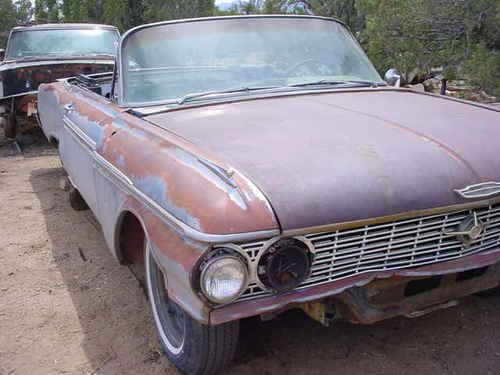 1962 GALAXIE SUNLINER GOOD PROJECT CAR ALSO COMES WITH 62 XL 390 FACTORY 4 SPEED PARTS CAR NO TITLE FOR PARTS CAR DO HAVE CLEAN TITLE FOR CONVERTIBLE . BOTH QUARTERS DO NEED FIXED ON CONVERTIBLE AND PASSENGER SIDE REAR FLOOR HAS RUST . HAS NO SEATS BUT TOP FRAME IS THERE AND HAS ALL WINDSHELD TRIM . PARTS CAR STILL HAS MOST OF SIDE TRIM . ALSO DO HAVE FRONT BUMPER HIGH BIDDER IS WELCOME TO COME PICK THE BEST PARTS I HAVE FOR THE 62 AS I PARTED OUT ABOUT 4 OTHER 62 TO MUCH TO TRY AND LIST SO FOR MORE INFO PLEASE CALL STEVE AT 928 681 3499 BUYER TO PAY ALL SHIPPING AND CARS DOES NOT LEAVE MY HOUSE TILL ALL FUNDS HAVE CLEAR BANK AND I HAVE CASH IN HAND