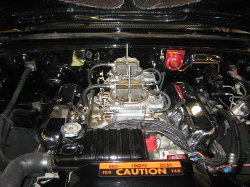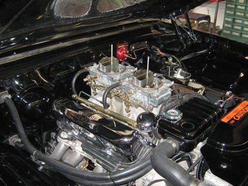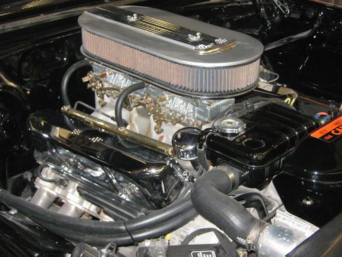 This engine is a 1965 427 Bored .040 with new KB Pistons Lemans rods, steel crank, Edelbrock aluminum heads 2x4 medium riser with 600 holleys. Trans is a C-6 completly rebuilt with a 3000 stall converter. The cam is a Crane solid lifter with dove roller rockers, the rear is a 3.25 9". This is a Georgia car with no rust ever to my knowledge. The paint is Raven black that is not perfect but great driver condition. The interior is in real good condition and very fresh. It has an Iditit chrome tilt column hooked to a power steering box. All the trim is very nice but not perfect. It also has a Griffen Aluminum raditor that cools excelent in all enviroments. The stereo system ha a 15" woofer behind the back seat 2 6x9 coaxial in package tray and 2 6" coaxial in front doors with 2 amps in trunk powered by a Rockford Fosgate tuner with cd, it sound is awesome. The car also has disc brackes on front with 2" dropped spindles and drums on the rear with 2 1/2 x 11 brake shoes. The wheels are Foose 20x10 on the rear and 20x8 on the front . Tires are 245-40-20 Front and 295-40-20 Rear like new. The rear tubs were slightly modified for clearence. This car was orginal 352-auto. Why spend crazy money on and orginal R code your afraid to drive when you can enjoy this one daily without fear of being hit or stolen. The exhaust consits FPA coated headers, 3" exhust and turbo mufflers. I have tried to represent this car honestly but would invite prospective buyers to come look anytime or you can call me at 913-367-0184 anytime before 8:00 pm CST. Thanks for your interest.