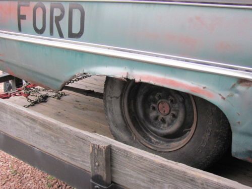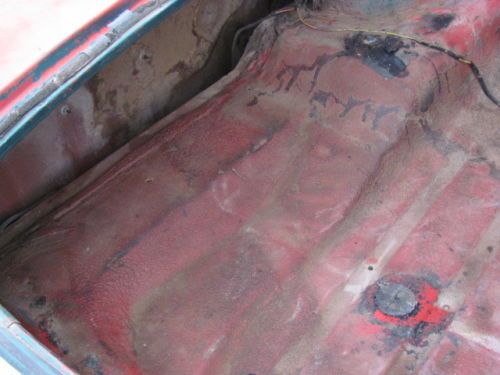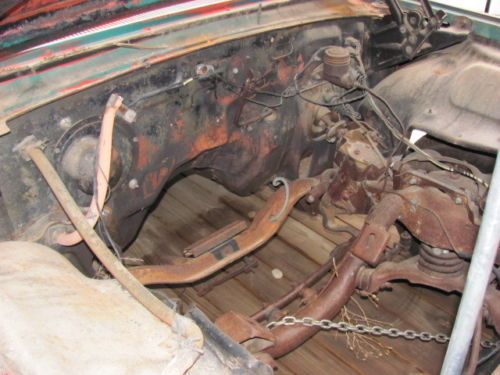 Missing original engine comes with 1964 390, original 4 speed as far as I know, bell housing, original cast iron long tube headers in good condition. Have a radiator in good shape that goes with and expansion tank. Will need a full restoration no rust in trunk very small amount drivers side front floor only. I have a new set of pivot bushings for the z bar for clutch and z bar is in trunk. Original color was ragoon Red white top. Someone thought it was a good idea to paint it green. Hood in picture removed and I have installed a good one with no hole with good hinges. Any questions please give me a call. Thanks John
