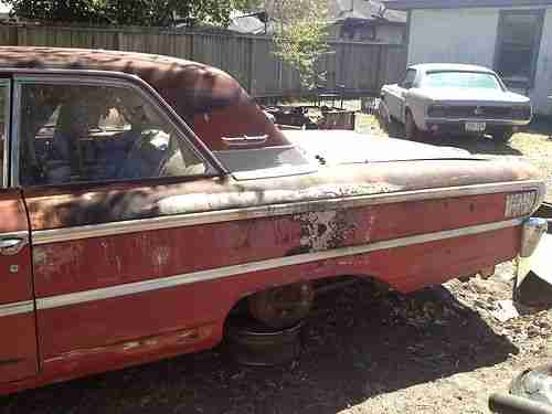 Up for auction is a 1963 galaxie 500 2 door "box top" hardtop. Car is an original 390 car with cruis-o-matic automatic transmission. Motor is gone, however transmission is in place along with driveshaft. The previous owner was nice enough to leave all accessories and brackets in the trunk including exhaust manifolds, generator and all pulleys and hardware and fan.Original radiator is still in place and looks in great shape transmission lines are still hooked up as well. Interior is all there but will need to be replaced. All stainless and aluminum trim is there as well as the front grille. Body is very solid as well as doors and fenders. All glass is there and windows roll up and down fine. I do not have a title for the car. I will upload more pics as I get the chance. If you have more questions you can reach me at 361-549-6758