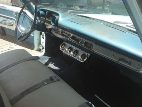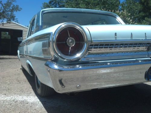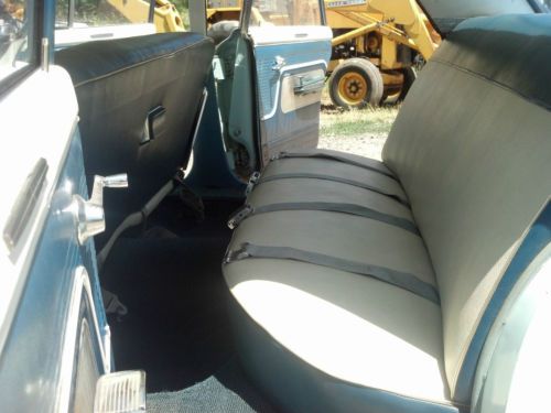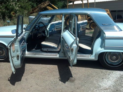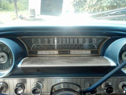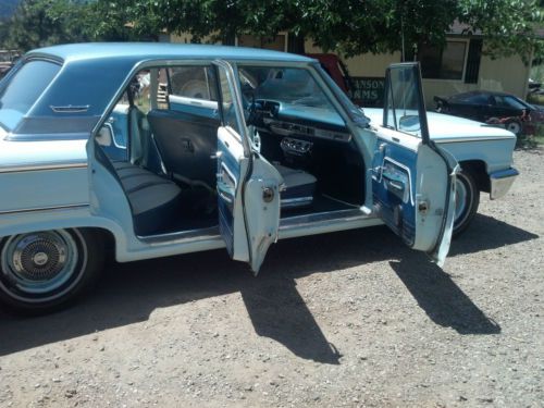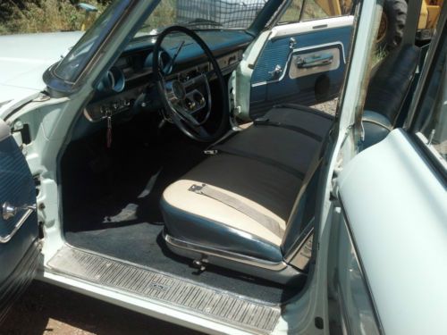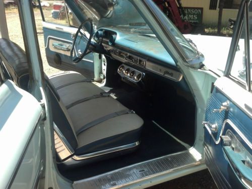 Our 1963 Ford Galaxie 500 4 door hard top with 260 V8 is an all original unrestored car. It was manufactured in Dallas, TX and shipped to California. We have the original owner's manual and are the second owners. It has always been garaged and well maintained. The title is clear and in my name. It has the original two tone Glacier Blue paint with the Viking Blue hard top. The paint is in really good condition with some minor touchup paint applied to nicks by the first owner. The body and original molding is in really nice, straight condition. There's one small dent in this car near the grille on the passenger side and that's it. Original wheels and hub caps. The wheels have some superficial rust on them. Michelin tires are about 75% or better remaining tread. All the glass is in nice condition with no cracks or chips. All of the window cranks work freely. Original seatbelts. The seats show a patina where the white sections are not pure white anymore. Carpet is in great shape with no rot. Headliner is original and in great shape. Dome light cover is missing. Dash paint is weathered a bit as seen in photos but as with the rest of the car, I left it as is unrestored. This car has Ford factory air conditioning and it works but is blowing cool air and not ice cold so it could probably use a recharge. All of the dash instruments work including the original AM radio, heater, defroster, turn signals, horn, etc. All of the exterior lights work. The 260 V8 runs very quiet with no ticking, tapping, knocking or faltering. It starts right up and has no modifications to it. It gets exercised and serviced regularly and has not been sitting. The water pump and AC belt were recently replaced. The automatic transmission goes into gear with a positive bump as it should and does not slip, clunk or falter. Brakes work as they should without pulling to one side or the other. We keep this in the garage and it doesn't leak any fluids. These Galaxies are only truly original like this once. |