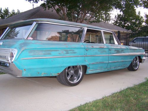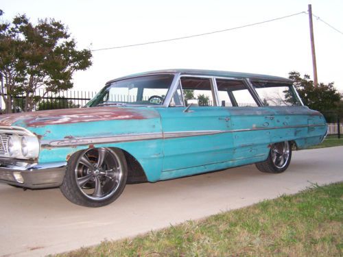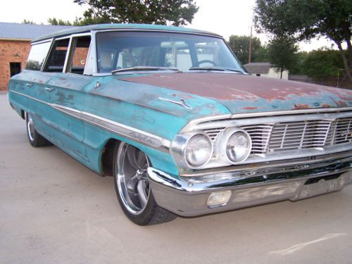 Up for auction is my 1964 Galaxie Country Sedan Wagon. This car is the perfect family cruiser and drives extremely well. The whole drivetrain has been restored starting with a fully rebuilt 390. Block was bored and a 390 crank was installed along with new pistons, rings, bearings, heads totally rebuilt, new valves and springs, Comp Cams 280 hydraulic cam and lifters, and Four barrel intake with original rebuilt Autolite carburetor. Motor machine work was done at Charles' Automotive Machine in Arlington. The Cruise o Matic transmission was fully rebuilt at AAAA transmission in Ft Worth with new seals, clutches and bearings. Front end was rebuilt with new lower control arm bushings and a stabilizer bar was added in between the lower control bushings to secure the front end along with all four shocks. Lincoln disc brakes were added with new calipers and pads. Rear brakes were rebuilt with new shoes and new wheel cylinders. The car stops very well. Axle bearings were replaced along with the rear end grease and gasket. Sanderson headers were added along with full dual exhaust, H pipe with Flowmaster mufflers. A new aluminum radiator was used along with a rebuilt power steering pump, control valve, steering cylinder and all new hoses. Gas tank was cleaned and sealed at Kirby's radiator in Ft Worth. The wheels are Boss 338 18" wheels with BF Goodrich Sport Comp 2 tires. The bumpers were re chromed at Quality Bumper in Dallas and are beautiful. Basically the drivetrain is new on this car. I have about 1800-2000 miles on it since everything was new. I drove this car to Austin for the Lone Star Roundup a few months back and it drove exceptionally smooth and well with four of us in it. Body is straight with the exception of a few dings here and there and a small scrape on the drivers fender. There are a few holes in the rear quarter but nothing totally rotten. Floors are very solid with only a few tiny holes in the left rear pan. Glass is good with the windshield having a crack on the far left hand side. Rear seat is very good. front seat foam is good. I have all the factory A/C parts if you want to add them back for air. Car gets many waves and thumbs up and is a lot of fun to drive. You can literally drive this car anywhere you wanted to. Keep the patina look or you can repaint for the perfect car either way. Let me know if you have any questions or want to see it. Car is located in Ft Worth Texas. Thanks for looking!