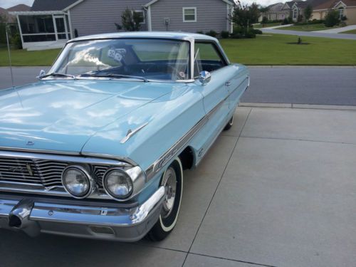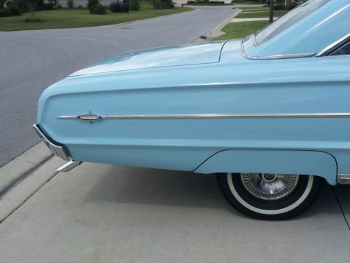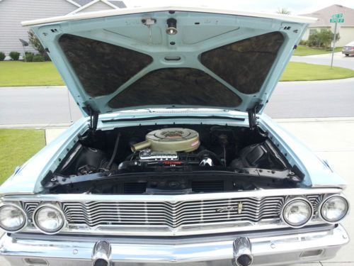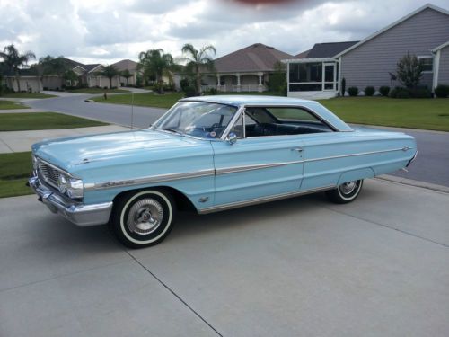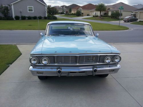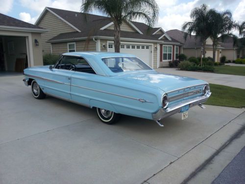1964 Ford Galaxie 500 2 door hardtop in Extremely Good Condition. 50 Years Young with 84,926 miles. The 1964 Galaxie was described by Ford as "a car bred in open competition and built for total performance. This is a big block Galaxie with a 390 V-8 engine at 300 horsepower. Automatic Transmission and Power Steering. 2 Door Hardtop, Sky Blue Exterior.
