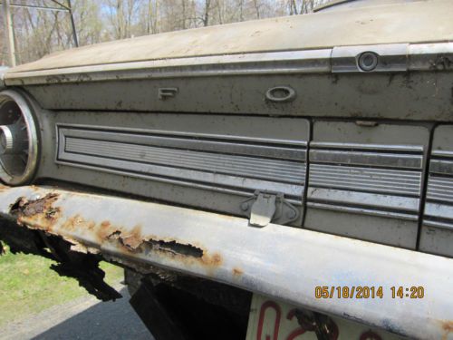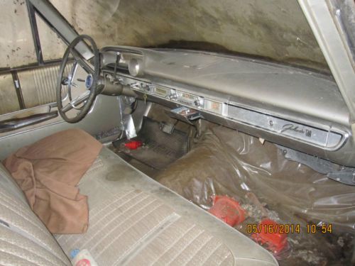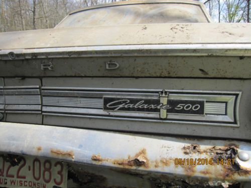 1964 Ford Galaxy 500 believed to be a 289ci. Automatic rescued from barn after being parked by original owner more than 40 years ago. I have the clear title in original owners name. Frame is very rusted as is lower portions of sheet metal, upper portions of vehicle including doors are in surprisingly good condition , as is engine compartment. If you need more pictures of a certain area I will get them to you. This vehicle being sold for parts. Motor does not run. Brakes do not work. Car must be trailered . I have described this vehicle to the best of my knowledge. Please contact me with any questions.