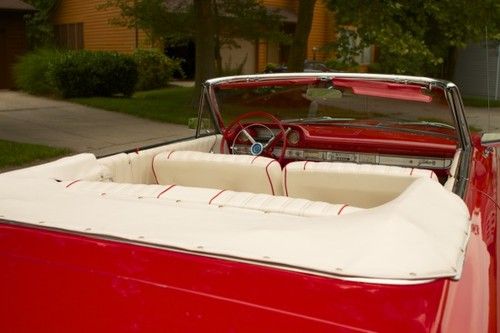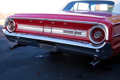 This is an outstanding numbers matching original condition '64 Galaxie convertible. Brand new (white top) and rear window, new 4bb Holley carb with electronic choke. New interior. Everything works except for the original am radio. I will replace with a working am/fm stereo if you do not want the original radio. Power steering and recently redone drum brakes. Perfect original glass. Engine runs perfectly, compression tested in all cylinders per specs and vacumn stays steady. This is a 352 that has been well maintained and clearly babied. Pulls like a new engine on highways and cruises with no effort. Transmission shifts smoothly. No leaks. No rust anywhere including undercarriage and frame. Frame rails are solid and straight. I have an electronic ignition I will give you (or install) if you do not want the points. Paint is a few years old and does have a few dings from road use. Nothing that could not be inexpensively covered if you wanted to put the finish in No 1 show condition. All rubber is in very good shape. Chrome bumpers are perfect and aluminum is all original and in very good condition. With proper polishing could easily be put in show status. If you are looking for an authentic full size Ford experience from the 60's a '64 Galaxie convertible would be hard to beat. Especially a convertible in as nice original shape as this one. Tires are nearing the end of their life and will need to be replaced. Other than that this car is waiting for you to take it to local shows or drive it about town.