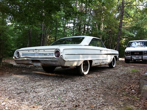 You are bidding on a 1964 Ford Galaxie 500 Fastback. I purchased this car as a project but am currently in the middle of a family situation and must get my money back out of it. Overall its in good condition with minimal rust. The only severely rusted parts are a very small portion near the accelerator pedal and the drivers side rear quarter 2 inches up. Body is straight with only minor dents in usual locations. It has a strong running Roller Block 5.0 302 code E7TE. Engine runs well with a new Holley carb. Brakes are rebuilt. New whitwalls but have deteriorated from sitting outside. The gas tank hasnt been cleaned yet so the fuel is routed to a jug, but the gas tank and lines appear to be good. It also has bucket seats. There are places in the trans tunnel and trunk where small portions of the floorpan have been cut out. I have driven this car a few miles and everything works well. Car is mechanically good and really only requires asthetics. The car currently has no exhaust. I hate to sell it but situations have changed. Car is complete and being sold as-is with a good title. Buyer is responsible for vehicle pickup or shipping. I will gladly communicate with the transporter and load the car once the time comes if you choose that option.