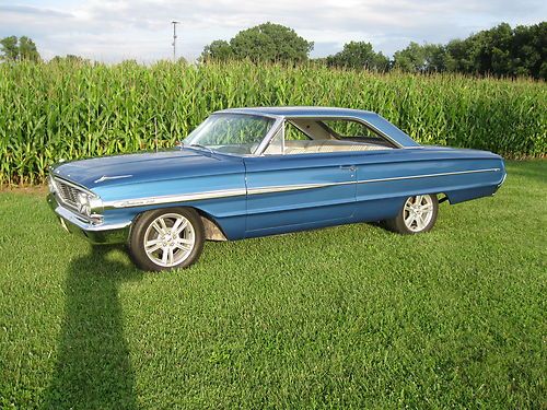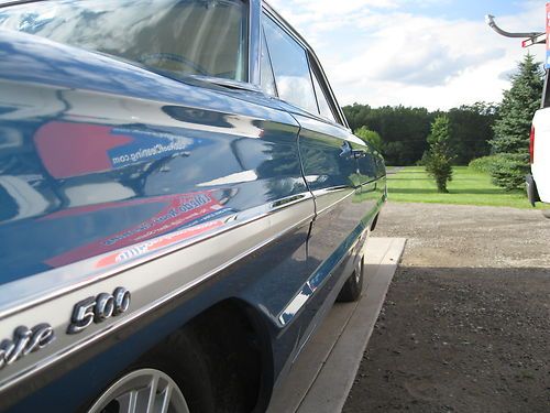 Today I am listing my 1964 Galaxie 500 fastback, This car has just been painted by a professional body shop that specializes in High dollar mopars. Some of their work has been featured in magazines. This is not a trailer queen, although I took it to a local car show this weekend and this car had one of the nicest paint jobs. It goes down the road great, Runs great and shifts great. Motor has been rebuild in the last year with a mild cam. The engine is a 289 with a 2 barrel carb. When I bought the car it had its original paint ( Chantilly Beige ), which I had changed to Guardsman blue. The lower quarters have been replaced. I recently put in a new interior kit. Door panels were dyed to match as they are in pretty good shape. The trunk was sprayed with rino liner type of material. Chrome is in really good shape. I put a rechromed bumper on the front and reproduction on the rear. You may have noticed that the trunk chrome and gas door chrome is missing, it is currently out being polished. This car turns heads and gets thumbs up every time I drive it. Floors are perfect, inspected when I had the carpet out. Please ask questions before bidding. Car is sold as is. I believe I have set a very fair reserve. The tires are new takeoffs off a 2011 mustang and they are 17 inch. Car drives real smooth with them. Thanks and good luck. I can be reached at (419)265-3306 Doug