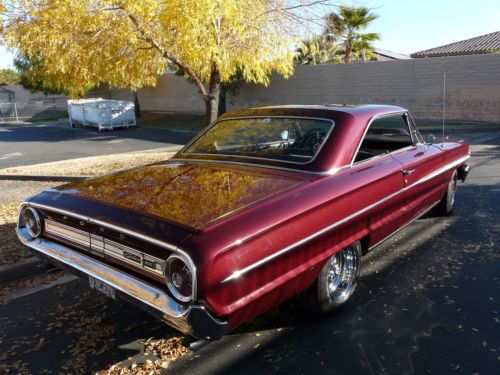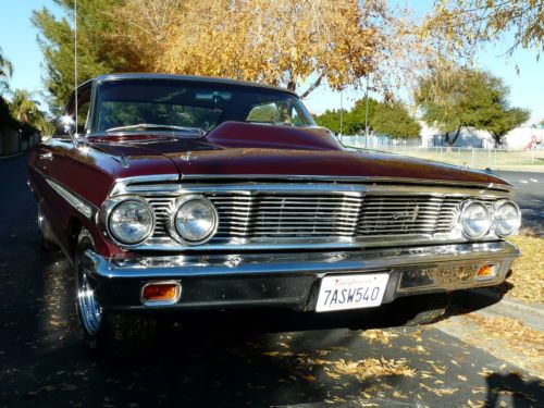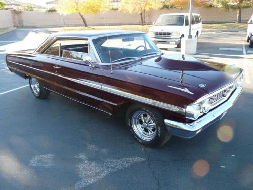 1964 Ford Galaxie Five Hunderd Fastback With a ford 429 big block and A Thunderbolt Tear Drop Hood.(This Galaxie came with a ford 390ci) the 429 was added some time back I have tuned the engine down to run on Reg, Pump Gas .And it still can go down the Hwy.over 100 mph And stright no sway.a big front sway bar helps out on the turns. This is not a leaker very dry . this car has no rust I bought it from central Ca. and now is in So. Ca. the 64 galaxies have a super heavy duty X Frame As you can see by the photos the interior is striking it realy draws a crowd .the wheels are Gragers and NEW the tires size 215 70R15.all the gages work along with the speedo and the added RPM. all ligts in and out work the horn works some times.the steering wheel is the Orig. big one. the dash has a Galaxie pad on it ,the dash has no tears in it .I no longer have room at the house for this car so it must be sold I think $12,500.00 is a fare price .It startes right up drives real well looks good window go up and down and the radio plays. The car is for sell in town so it may come off e bay at any time, or if I get a good offer from you. Thanks for looking My nunber is 1 760 275 7746 if you need more Info.