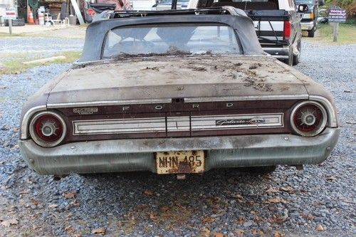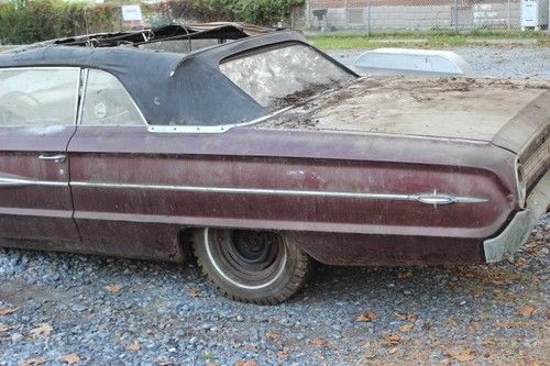 1964 Ford Galaxie 500 XL .Convertible R Code. This is the real deal. Photos of all 4 Vin. Tags. Stored since the 70's, this 2 owner car has 47000 miles. Minimal amount of rust in quarter lower and floors. See pics. Complete less engine and trans. Tag reads 427-4 speed 411 rear. Kelsey Hayes wheels 15X51/2. Original Ford Script Tach. Long tube case iron headers. 3 inch brakes. Transistor ignition box and harness. The paint and interior are original. Bumper jack still in trunk. Car has under dash air (possibly dealer item). Color Burgundy with black vinyl. And yes the front brake crossover line is on top of cross member. I am listing this car for my father in law. If you have any question please call Jerry At (609)412-8170. No emails please. Cash or bank wire. Sorry no Pay Pal on this item. Thanks