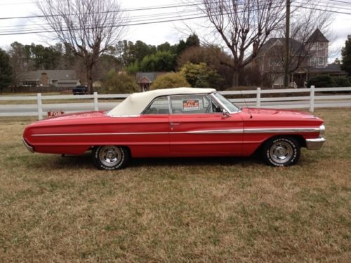A sweet reminder of the past. Solid running 1964 Ford Galaxie Convertible. No dents, but complete all over paint. Interior and convertible top, with matching boot are all in great condition. A fun car to drive but needs the cosmetic repairs to finish off the car. It has an aftermarket radio. Have owned and driven the car over the past four years and has been driven almost every Sunday. Also have fender skirts, that are not on it. The true mileage on this car is unknown. Please message me if you have any questions or would like more detailed pictures. Buyer must make contact within 24 hours after the sale has ended.