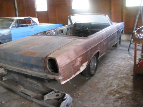This convertible had restoration started and then stopped. The car was to be a frame off restoration. This car came from the state of Washington where they do not use salt in the winter. The frame is in excellent condition and has been powder coated in black. The body is in very nice condition and the only rust through is about 3-4 inches on the lower part on the passenger quarter and the two rear floor pans are rusted out. If you run the numbers the car will come back to a 289 cu in and a 3 speed. There is no engine or trannie for the car, but the pedals are still in tact ( perfect to convert to a 4 speed car ). There is another 65 Galaxie convertible that has a bad frame that will come with this car. This car is a 352 cu in, automatic car with the engine and trannie still in the car. This car has about everything you will need to finish the other car. It has the top mechanism, radiator, windshield, and a complete interior. The following parts are also included in the purchase: A nice set of bumpers, nos taillights, and nos rear light bezels. The car is what it is. Please look closely at the pictures and I will answer any questions you may have about the car. I reserve the right to end the auction early, should the car sell locally. |