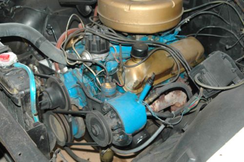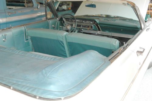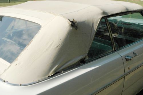 1965 Ford Galaxie 500 Convertible. White, 123,000 miles, V-8, 289 c.i.d., Autolite 2100 carburetor, 3-speed manual transmission on the column, power steering, manual brakes, no A/C, working AM radio. All gauges and lights are functional. The clock does not work. This Ford is a nice driving car, it shifts well and tracks straight. You can drive it home. This is not a show car, but it is very presentable. On a scale of 1-10, I would rate it a strong 7. The car was repainted by previous owner. There are a few small bubbles near the bottom of the passenger side door. Floor pans are in good shape. There are two small holes in the left rear floor pan, about a nickel in size. All the exterior trim is present, but it is not perfect. Both bumpers are very nice. The convertible top is serviceable, but has some holes and should be replaced if you intend to drive in the rain. The original tonneau cover and foam pads are included. The cover is missing a few snaps, but is usable and does not flap at speed. I installed two new hydraulic cylinders (three years ago) and the power top functions very well. There is a tiny (1/4”) crack in the windshield that has not changed in size in the last 8 years. The interior is complete and presentable, although I think the front seats came from another car. The color is not a perfect match and the circular chrome pieces along the stitch lines are not present. The carpet is usable, although loose around the edges. The sun visors are worn. The dash pad shows the usual curling of the edges. The interior trim is in good shape. The chrome trim along the inside of the windshield is pitted. The driver’s seat bottom has some rips that I hide with a seat cushion. The spare tire and jack are present. If I completely fill the gas tank it will leak a little. I haven’t investigated the source of the leak. If you want them, I can include two good, rust-free front doors for an additional $100.00. The wheels (American Racing Wheels) and tires (BF Goodrich radials) are about 2 years old. If you are close enough, I welcome you to come drive this car. |