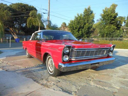 You are bidding on a 1965 Ford Galaxie XL 500 red convertible ,red/white interior. 352 motor runs very good .This car is ready for the road.. This is not a show car but, is a head turner . recently painted ,working convertible top with rear glass window.No researve auction bid, win drive it home.PRICE TO SELL Winning bidder must pay within 7 days of end of auction.I accept PAYPAL, please NO (0) no feed back history bidders. this is a no reserve auction. I can assist in finding transportation to all lower 48 states winning bidder is responsible for shipping cost.serious inquires please.E-mail or call owner (619) 723-5977 or I listed for a friend car is in San Diego Ca.(502) 500-6410 any Questions