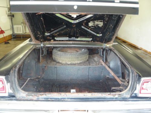 trunk floor has rust although only pin holes through the floor. Easily fixable. All the trim and emblems are on the car. The outside mirrors are off the car, I have them and they
