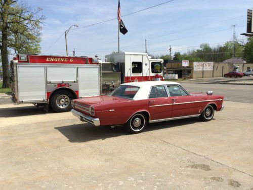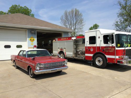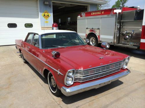 1966 Ford Galaxie FIRE CHIEF car. Was told this came from Carmel or Anderson Indiana. Appears to be original 54,000 mile car. All the original equipment is present. The roof light works great. The passenger side fender siren and red light work. The "Wig-Wag" light on the drivers fender works. The flashing red lights in the grill work. They are behind the grill. Original Motorola radio and electric siren/wale/yelp and still in car but can not get to work. Car runs and drives great. 390 AT. New tires and brakes. Very good condition for the age of the car. There was rust repair in both rear quarters. Rest of car appears solid and very good condition. Drive it anywhere. This is not a perfect car but just a fun cruiser. You see Mayberry Police cars all the time but not fire chief cars. Really gets a lot of attention. Good for advertising too as people will pull in just to check it out. Tax right off? LOL. Well thanks for looking and I hope you win the auction. Steve