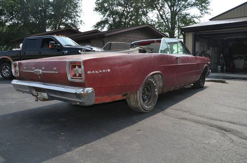 Up for sale is a 1966 Galaxie 500 Convertible 7Litre Edition. I wont bore you with all of the history but this is a rare and sought after piece. The car is "Q" code 428 4V with an automatic transmission. It retains its original engine and transmission. The engine will start with the key and run, there is no gas tank so I have a gas can to run it off of if you would like to here it start. We jacked up the rear end and the trans went into gear and moved the tires. The brakes are bad so I have not tried to actually drive the car. The car has power steering, which works, air conditioning, power disc brakes on the front and rear drums. Most of the 7 litre emblems are still on it. The body is in need of a complete restoration. It has rust in the floor pans, mainly the rear, the trunk, and the rear quarter. The frame appears to be solid. I have all four hub caps that are specific to the 7 litre, they are a little beat up but are there. The interior in mostly complete. Seats are fair. You can see them in the pictures. Almost all of the electrical in the car is in tact. Headlights work, taillights, turns came and stuck on (bad flasher), and even the door panel lights turned on when you open the doors. The car is a great project car with most of its original parts still in tact. Please contact me with any questions, lots of my auctions end with an honest phone call. 765-376-3486 Thanks and Happy Bidding!!!!