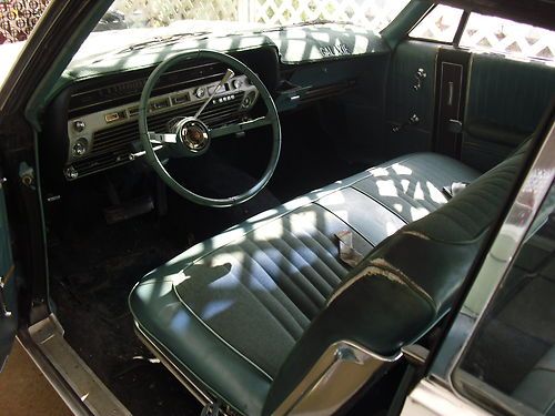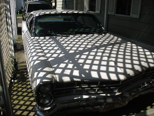 Hello Up for bidding is a Galaxie 500 2-Door coupe.On the road historic plates runs,drives newer brakes windshield newer tires,new transmission,new gas tank car was a light greenblue color when new long time back painted dark green now has white paint job from maco.Inside is all there color is greenish.Car was a New Mexico car most it's life has not much rust to speak of little in trunk floor very little for it's age of almost 48 years.Right now the battery is weak car needs a bulb here and there fuse replaced horn button needs work.Seem not seen any real body damage is staight drives nice but has been in storage in side and out sitting more than driving.Title I have it here need to find it may have to go to DMV get one have copy of it if car sells.Just can't find where I put title right now.Seems know accidents all it's orginal body parts.Need someone who knows how to work on cars and the like the motor believe is 69 mustang 351-2V.runs really nice.Questions ask?
