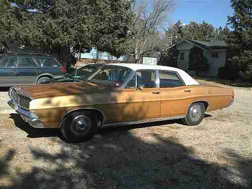 For sale, 1968 Ford Galaxie 500. 4 door, hard top. Clean title. V8 engine. All original as far as I know with 83,000 original miles on it. Gold in color, white hard top, with red and white checkered interior. I don't have pictures of the interior because I'm living about 200 miles away from where the car is but I can get them if e-mailed. Interior is very clean and well taken care of. Dashboard is vinal and has a cloth cover on it. There is one small crack on the cover over the speedometer. Very clean with a new paint job roughly 10 years ago. It has been garaged and well taken care of. It is missing one hub cap. Still has the original tire iron. Runs very well, radio and heat/ac works. Has had synthetic lead ran through it with each tank since I've owned it. Only driven a handful of times. If there are any questions please do not hesitate to message me, I love this car but it has to go.