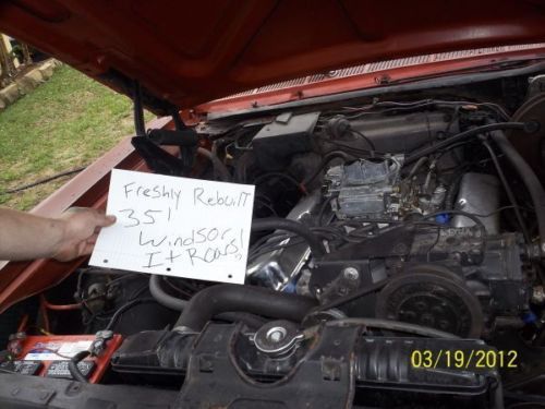 Engine is Rebuilt with maybe 100 miles on it 351 Windor with Holley carb / Edelbrock intake, etc . Recent rust Cut out and Paint job Need Tail Pipes (ends at headers) Interior needs to be done but not terrible as is Call Mike For Details (904) -525-6161 |