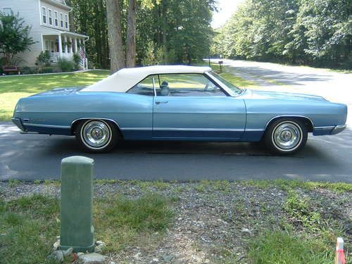 Convertible, RUST FREE, C-6 Automatic, heated garage kept last 15 years. LTD label on dash. Battery on trickle charge last 15 years. Everything works except cigarette lighter receptacle. All service records since 1994. Working Original AM Radio. Nice wheels of Lincoln Continental Mark IV, tires will pass inspection. Dual Exhaust with Glass Packs. NEW: Wires, Distributor Cap and Rotor, Wires, Plugs, Points, 160 Degree thermostat and chrome housing, cleaned and protectant treatment added (RaggTopp) to convertible top and bimini. Painted 15 years ago and garage kept after that, still has great shine as you can see in pictures, water beads right up on contact with paint. I have Winter Blue touch up paint and clear coat. I recently drove this car 66 miles in the heat of the day. I have title in hand.
