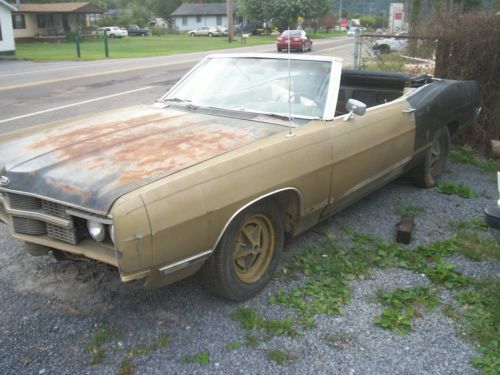 I am listing for sale a true barn find. this car has been stored inside a shed for nearly 29 years. It is a very solid 1969 ford galaxie xl with hideaway headlights . It has a running 429 thunderjet engine with 365 horsepower( i did check the engine #) It has a floor shfter with console. This car has very little rust ,there is a couple of places in the drivers floor patched with car tags, but otherwise solid everywhere. The quarters are solid but do have dents . the trunk is perfect. the top mechanics are all there but cloth will need replaced. This car is missing the two front bucket seats and the top to the rear seat. the bumper is with the car and laying in front floorboard. I have a clear tn title in my name. this car is also listed locally and auction could end early if the right offer is made if this car doesnt sell i will possibly part it out if you need any parts please e-mail me with requests