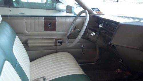 I just had the seats upholstered in Green/White leather to match the exterior. It's beautiful. The car drives like new. The paint is rubbed thin in a couple places on the hood of the car but other than that it is in immaculate shape. There are no dents in the car, the body is straight. I purchased the vehicle from a friend because they were just letting it sit and collect dust. 71k original miles. 351m400 motor. 3 speed auto. Runs and drives great. Shifts great. Original paint. Straight body. No rust. Original spare with the bumper jack. Cragar 15" rims. All new shock absorbers. Coolant has been flushed recently with new hoses and clamps. A/c and heat work great. Bench front seat, split back support. Bench seats in the back. All the windows roll up and down. All locks work well. Clean and clear title. Tires have more than 50% of tread left. Headliner is in really good shape along with the dash. Only very minor cracks. Doors shut very nice and tight. All the trim is there and in tact. Just replaced the brake master Cylinder, spark plugs and spark plug wires and brake pads. |
