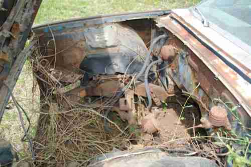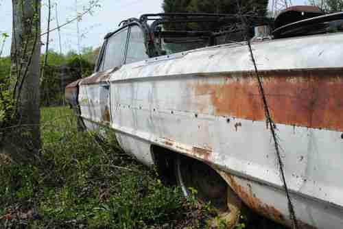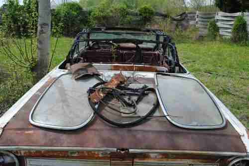 You guys are the experts.This was my father in laws and he has passed.The top looks in very rebuildable condition.No motor or trans.We scrapped many cars this summer and want to get more than scrap for this.Im sure the pans are gone.Im 42 and have rebuilt many salvage cars and been involved in the shipping.I want a $250 deposit at end of auction thru paypal within the 24 hrs.Car cant be shipped until $ clears.My father in law always said the top would be great for a conversion.I believe we can find this title.It was open.My name is Chris 704-798-1499.Car is in Salisbury N.C.I will try to answer your questions quickly.Dont wait till last minute to start asking.Im not sure what the parts are on the trunk.