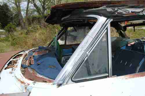 You guys are the experts.This was my father in laws and he has passed.The top looks in very rebuildable condition.It still has the drivetrain but im not sure how to pop hood.We scrapped many cars this summer and want to get more than scrap for this.Im sure the pans are gone.Im 42 and have rebuilt many salvage cars and been involved in the shipping.Windshield in seat is good.I want a $250 deposit at end of auction thru paypal within the 24 hrs.Car cant be shipped until $ clears.My father in law always said the top would be great for a conversion.I believe we can find this title.It was open.My name is Chris 704-798-1499.Car is in Salisbury N.C.I will try to answer your questions quickly.Dont wait till last minute to start asking.