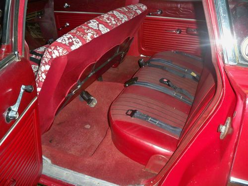 I added the headers and exhaust. Professionally installed by a local speed shop. It has a rebuilt carb, new cap and rotor, condenser, points, plugs, wires, valve cover gaskets, 160 degree thermostat, fuel pump, brake lines, battery tray, wheel cylinders, headlight switch, dimmer switch, all lights, seat cover, middle seat belts, cup holder and a bunch of air fresheners. I like air fresheners. I have worked out all the bugs. The engine is freshly painted Ford Blue and the valve covers and air cleaner are freshly painted Thunderbird Gold. The original seat cover was in bad shape so I installed the seat cover like a new cover by disassembling the seat and contact gluing the covers on and reassembling. I have worked in several custom shops and all work is professionally done. It could us new carpet if you're into that sort of thing. I'm not. Also the rear door doesn't latch properly and the window switch doesn't work. The window motor works fine though. This car has factory air conditioning and it might work. I removed the belt when I got the car and haven't really needed air so I didn't put it back on. The wood was added to the car sometime in it's life. Country Sedans didn't come with woodgrain. The only mod I wanted to do but did not get around to is to cut one ring out of the front coil springs. I'll leave that to the next owner. Just please keep the hubcaps and don't put some new style ugly wheels on it. The tires were brand new when I got the car and are still in good shape. The windows are all in perfect shape and the cars shows no signs of being in any accidents.