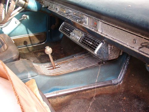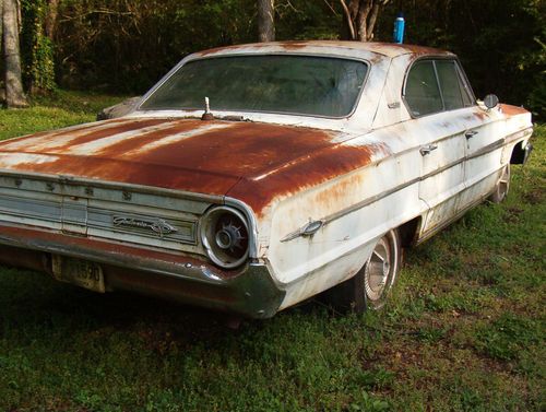 Up for auction is a 1964 Ford Galaxie 500XL, 4 dr. hardtop. The car is white in color, with a blue interior. This vehicle may be used for either restoration, or as a parts car. The car has not run in approximately 10+ years. The engine was overhauled at about 80-85,000 miles, but the odometer is at over 160,000 now. The car was parked due to the exhaust manifold bolts being broken off while a "mechanic" was attempting to replace the manifold gaskets. When he removed the intake manifold to have the broken bolts removed, he neglected to clean the debris from the valley, and consequently partially clogged the oil screen/pickup. Car was not driven with the oil light on, or with low oil pressure. I purchased the car to repair, but other projects came first, and the repairs were not done, so the car has sat idle for over 10 tears. This is a complete car, less the generator, brackets for the generator, and other small miscellaneous under-hood items. The car is factory equipped with bucket seats and console, with console mounted shifter. The floor pans are in good condition, to the best of my knowledge (haven't pulled up the carpet to look) , but have looked under the car. The trunk floor is rusted out, due to a bad trunk weatherstrip. The trunk floor will have to be replaced, as will the trunk weatherstrip. Interior is complete. Glass is intact, but the front windshield is cracked at the bottom. The car has been kept covered to prevent water intrusion into the interior. Seats and door panels are in good to better- than- fair condition. Headliner is there, but has fallen in some places.All exterior moldings and trim are in place, and for the most part has only tarnishing, but no dents. The body is in very good condition for the age, with some minor rust out on the lower rear quarter panels behind the wheel wells (due to trunk rust out). Car has factory spinner (tri-bar) wheel covers, and a pair of stainless skirts. Windows roll up and down. The car has no factory air conditioning, no power locks, no power windows, no power seats. Car will have to be picked up at my location, or the buyer must arrange for transport to his/her location, at his/her expense. You must make your own arrangements for transport of the vehicle. Car will not leave these premises until payment is made in full. If the buyer is to personally pick up the car at my location, cash is acceptable. The only other form of payment to be accepted will be via PayPal. The car is sold AS IS, with no warranties, either expressed or implied. If you have any questions, please ask. Pictures are posted.. There is a low reserve on the vehicle. I would rather sell it cheap, as see it go to the crusher or for junk. Car is sold with a Bill of Sale only. Vehicles in Alabama were not issued a title prior to the 1975 model year.