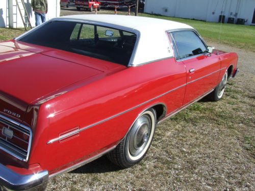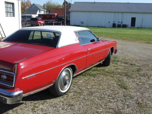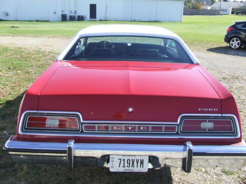 1974 FORD LTD 2 door hardtop, red, recent white vinyl top replacement by professional shop, black int. approx. 35,000 miles, 400 cu V8, 3 speed automatic, P/S, P/B, A/C but not functioning, AM radio, cornering lights that are not currently connected, power trunk release button in glove box, original Ford floor mat in front, always garaged, no rust, appears to have been rustproofed, see plug in door jamb photo, excellent shape, a true time capsule, drives like it should, trans shifts fine, recent tires, new radiator, new brake master cylinder, recent dual exhaust with flow master type mufflers, sounds good but not quiet with factory style tailpipes. Original wheel covers included, as well as dealer brochure, and 5 volume shop manual set from 1974.There are a few door dings if you look close enough that could be removed by paint-less dent removal service. I purchased the car in July 2008 with 32,458 miles, and it currently shows 35,136, which equates to 2,678 miles or 535 miles per year in the last 5 years. Title shows miles as actual miles. Enjoyable car to own, drive, and show. Being sold as is, so please make sure to look at the photos closely before you buy! Buyer responsible for pick up within 7 days of auction unless other arrangements made, deposit of $500 due at end of auction via PayPal, and balance due by cash or cashier’s check within 7 days of auction end. Car location is Columbus, Ohio. You are welcome to inspect it locally before then end of auction.