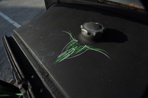 pipes and loud as shit when you get on it but not much louder than a harley at normal throttle. Full size chevy sedan rear end. Seat upholstery is