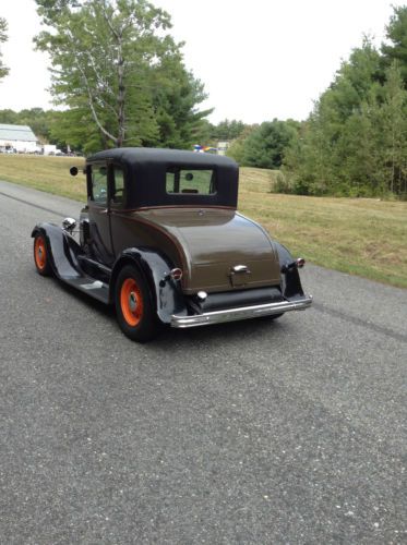 1928 Ford Model A Coupe, Street Rod Powered by a Marine 4.3 V-6 Chevy engine The transmission is a 5 speed Camaro with V-8 Gear set, Edlebrock, 500 CFM Sanderson headers The rear end is from S-10 pickup 3:73 gears All Steel Body and fenders The frame is a Brookville Roadster The front end is Heidts Superride IFS, coil over shocks Disc Brakes This Car was built in 2009 It has heat, but NO A/C The rear package tray has been removed and it is fitted with an adjustable bench seat to accommodate anyone over 6 foot tall. It has 3 point safety harnesses for driver and passenger. The rumble seat area is used for storage. This car drives and handles beautifully at all speeds. The paint is still nice and shiny, but does have some chips and nicks due to road use. All Safely glass is in good condition with no cracks. Windows roll up and down easily and windshield pushes out effortlessly. It has a 32 Ford gas tank with an electric fuel pump It has aftermarket wiring harness with turn signals and 3rd brake light http://youtu.be/hCfD7WdbkiE you can see a video on youtube **** Please e-mail us with any questions you might have. I did take a few short videos, which I can send you. *** It is available to be seen at our shop *** Buyer is responsible for the arrangements and cost of pickup and delivery. We will offer 2 wks. free inside storage to the buyer. *** It is being sold with the proper paperwork from a Maine Licensed. Automotive Dealer *** Deposit of $1,000.00 due within 3 days of the end of the auction with paypal with the balance due within 7 days with certified funds. We will accept a personal check, but it must clear before paperwork and car can be released. *** Thank you for looking and good luck if you choose to bid On Sep-21-14 at 12:06:50 PDT, seller added the following information: https://www.youtube.com/watch?v=_lhbXRUhZAg. This is another short video of the car |