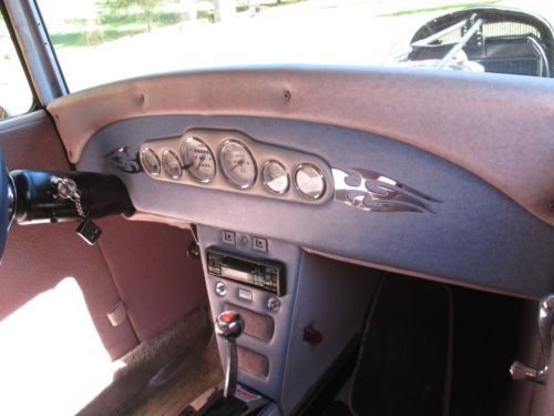 What we have here is a highly customized hot rod that has been sitting in an enclosed garage for over a decade. The former owner acquired it from an estate and only drove it to a few shows then lost interest. It has an all steel body with fender/body seams welded and the side windows deleted giving it a sedan delivery appearance. The doors have been shaved and has remote electric door openers and locks. The interior is in excellent condition and shows very little wear and there are not tears, stains or rips. It is sitting on a shortened El Camino chassis with a big block 402 engine, turbo 350 transmission and 10 bolt rear. The car cranks, idles and drives great. All gauges and speedo work and it maintains good and steady oil pressure. I only drove it a few miles but in those few miles I got a hundred looks and thumbs up. There are a few issues that need to be corrected including the right door opener does not work and the remote does not work at all. The stereo is not working and I was told the sound system and remote openers all stopped working at the same time. The matt black paint is a little thin and needs attention but there are no signs of frame or body rust. I had planned to go through the electrical system and do some other upgrades but other projects keep getting in the way. Car has a clear title showing the original VIN# but there is no vin plate. I can provide a bill of sale from the former owner for your DMV. |